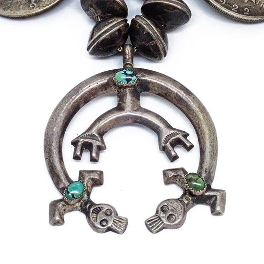1970's Native American Navajo Turquoise Squash Blossom Sterling Silver Necklace & Bracelet Set by HARRISON